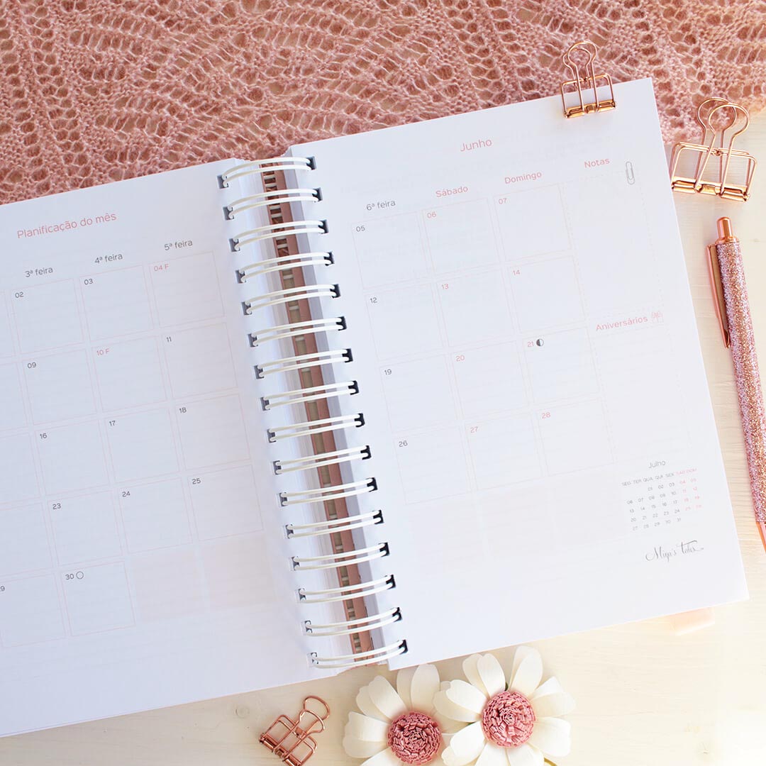 Esta agenda é a definição de organização e sofisticação. A capa nestes tons é encantadora, e o interior bem pensado torna a minha vida mais organizada e inspirada. Obrigada.
