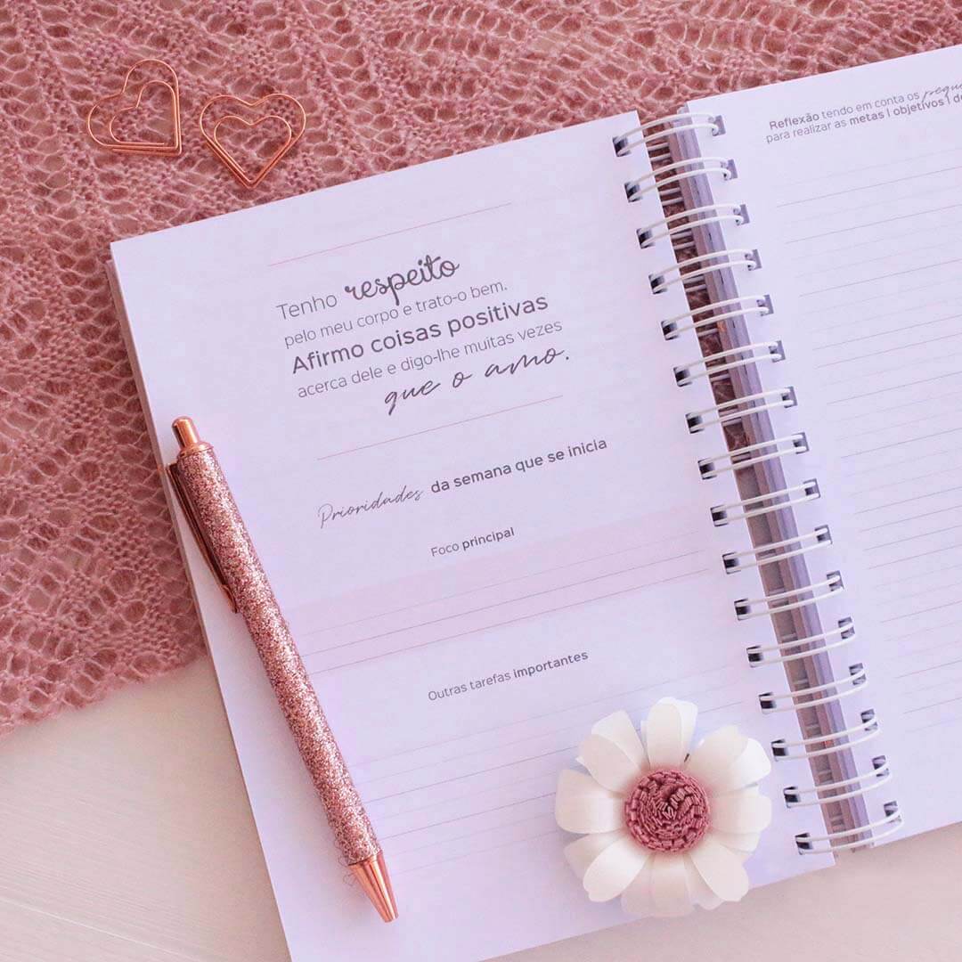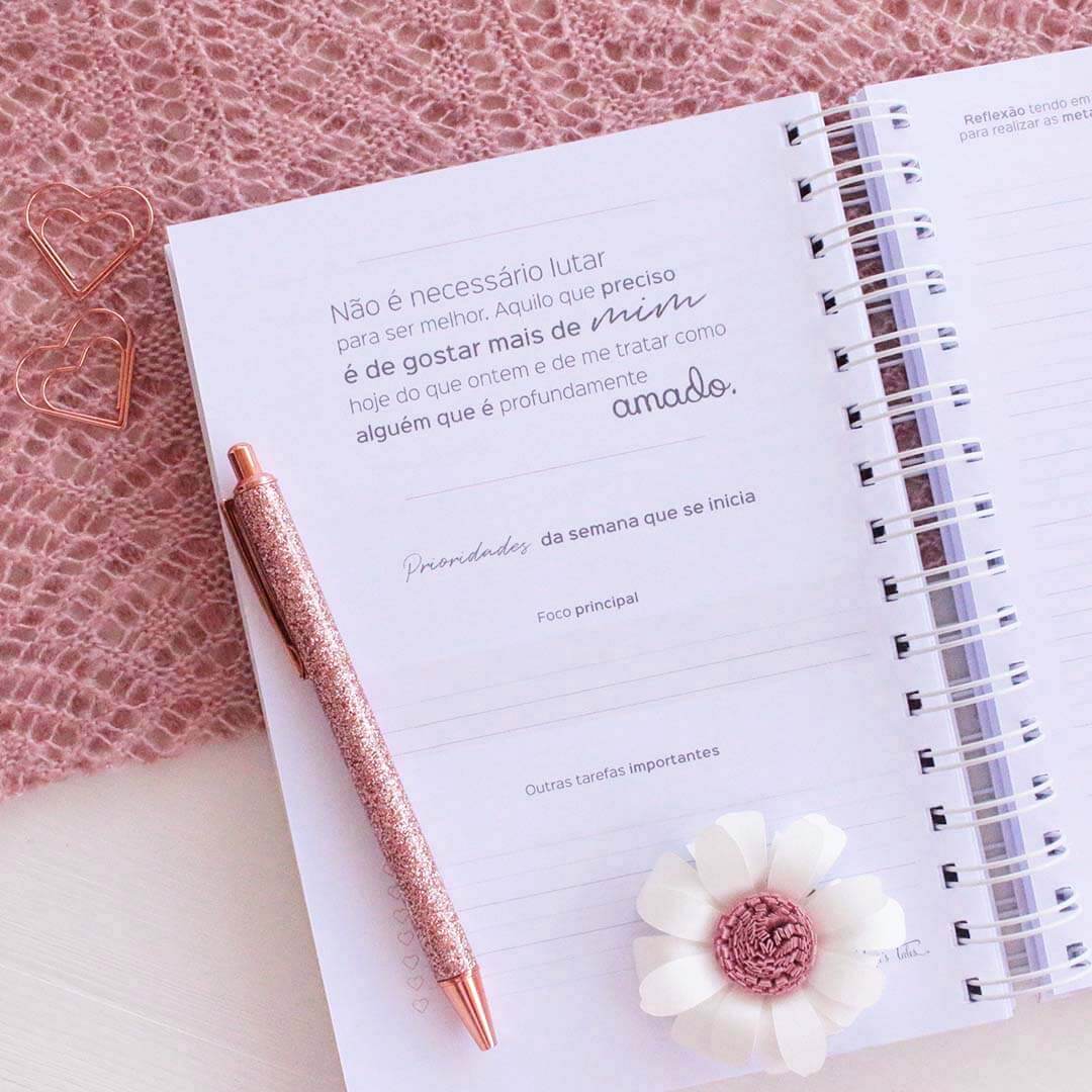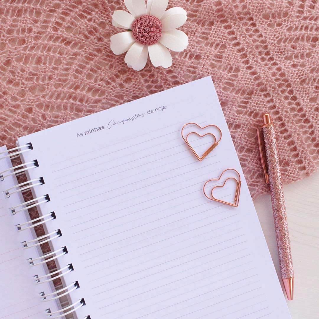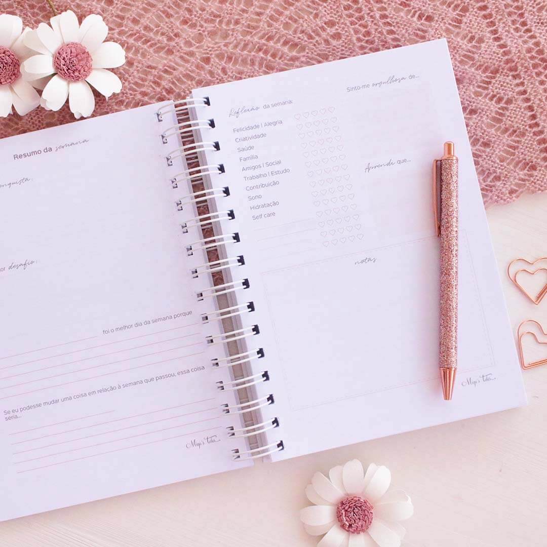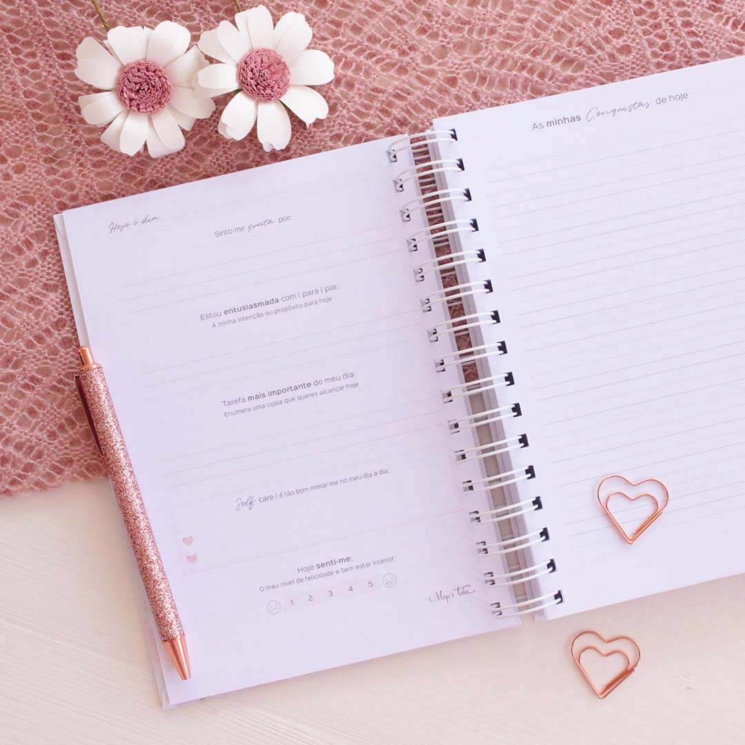 - Página diária para propósito, conquistas, gratidão, selfcare e muito mais