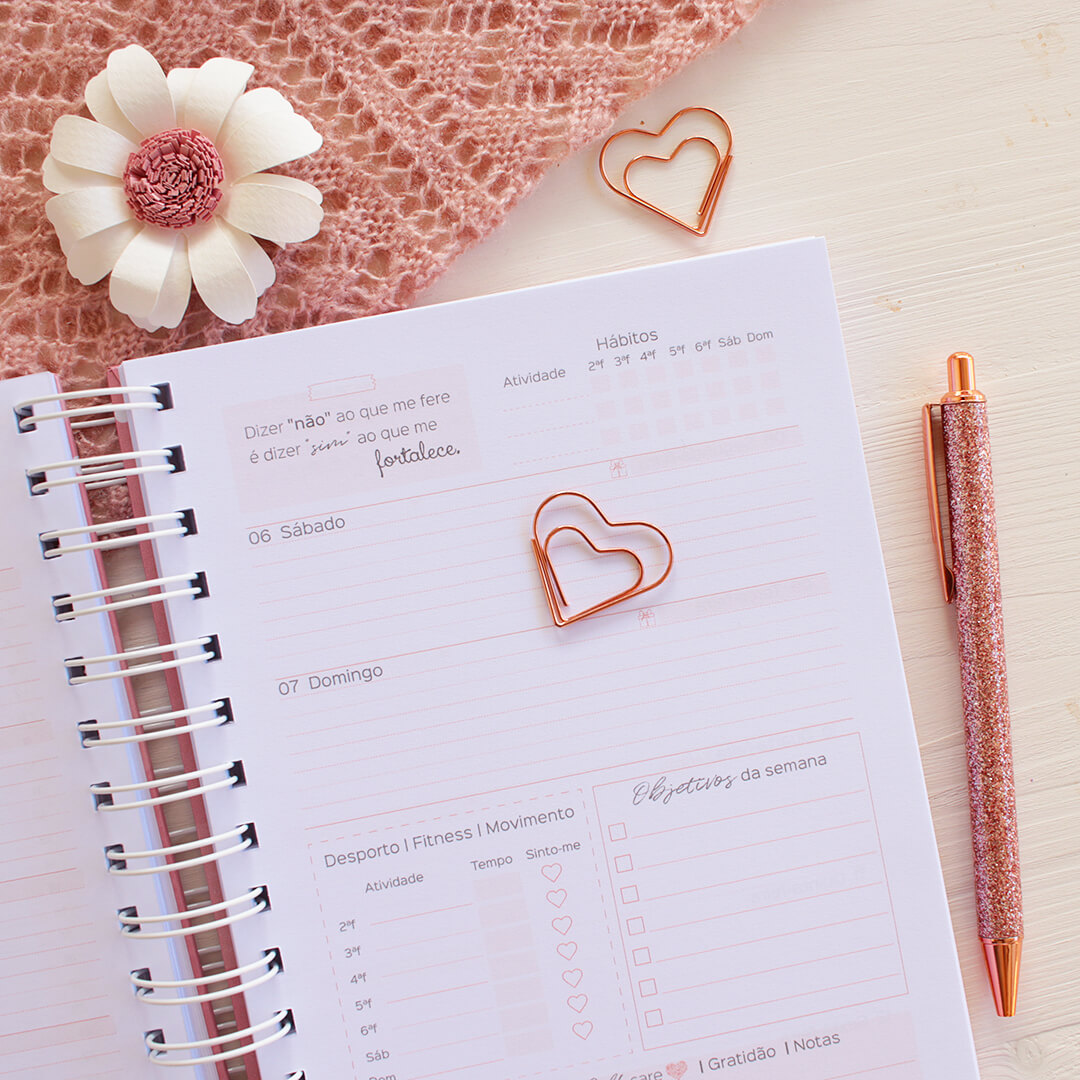 - Vista semanal com objetivos da semana, o melhor da semana, selfcare, registo fitness, traking de hábitos. (apenas disponível na versão bullet)