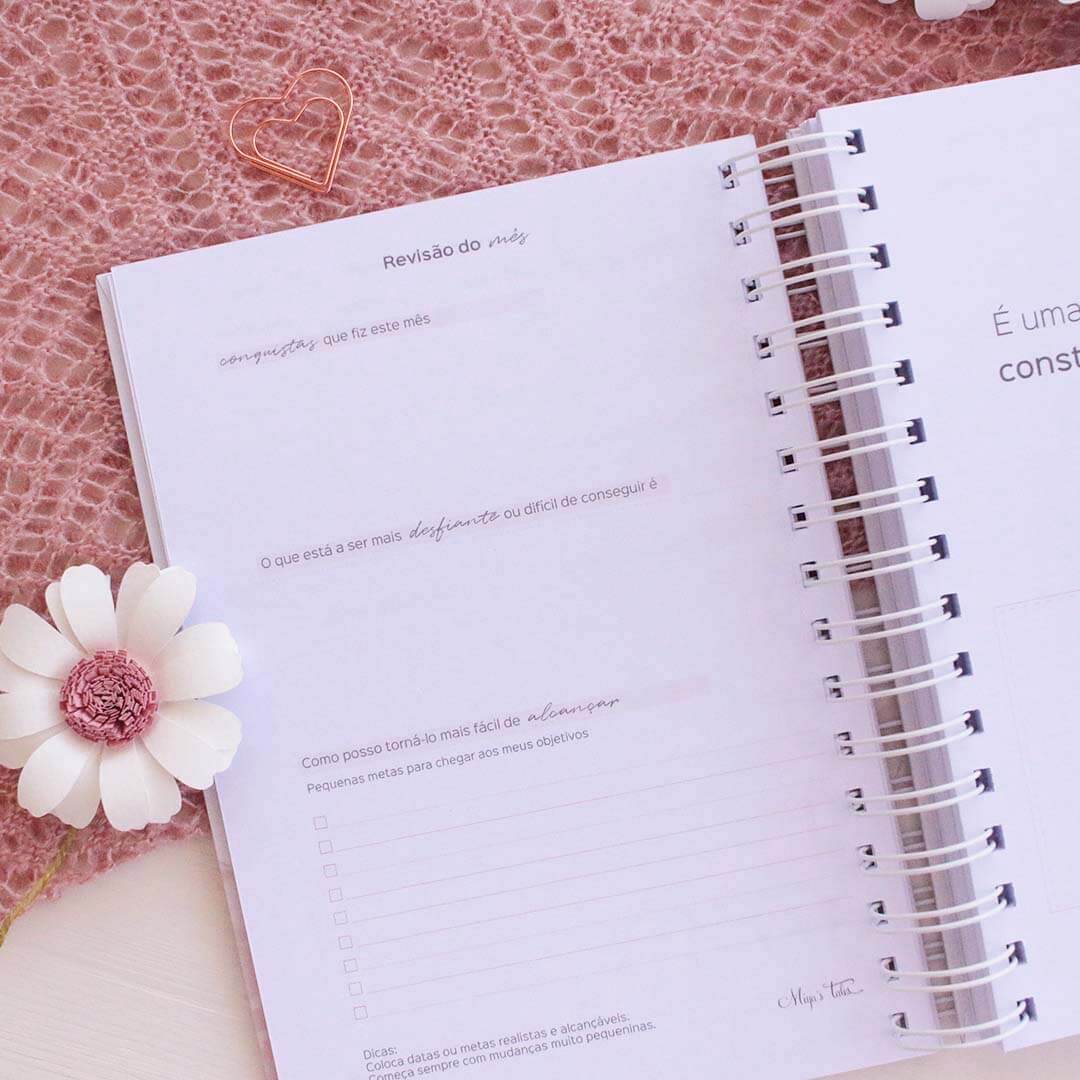 - At the end of each month you will find a review with major achievements and challenges, a reflection to help you more easily fulfill the challenges you encountered in the month you completed, motivating phrases and space for notes