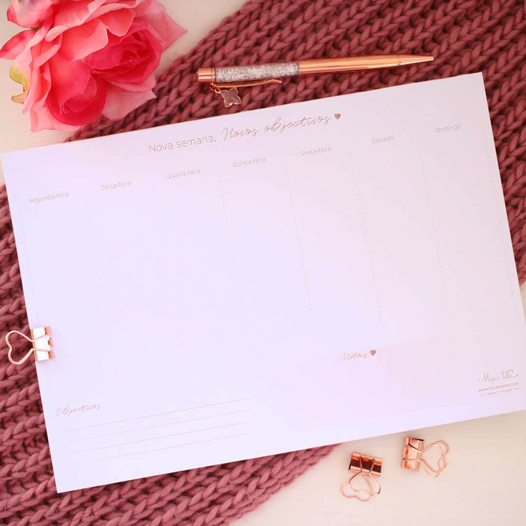 With this weekly planner (Portuguese version), you'll be able to better organize your days so that all your plans, dreams and ideas run smoothly.