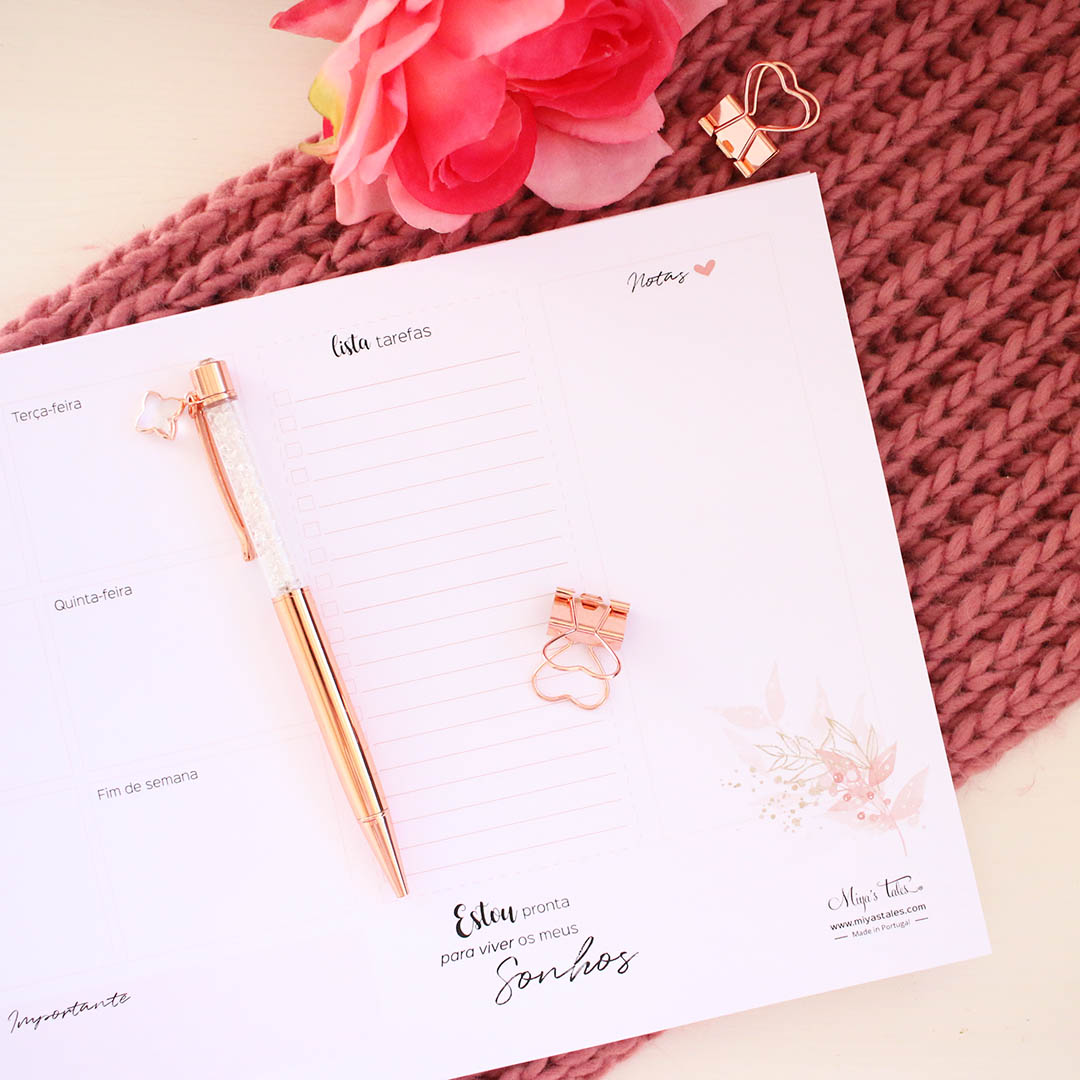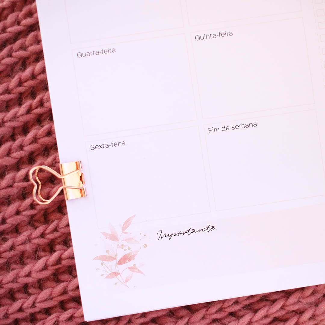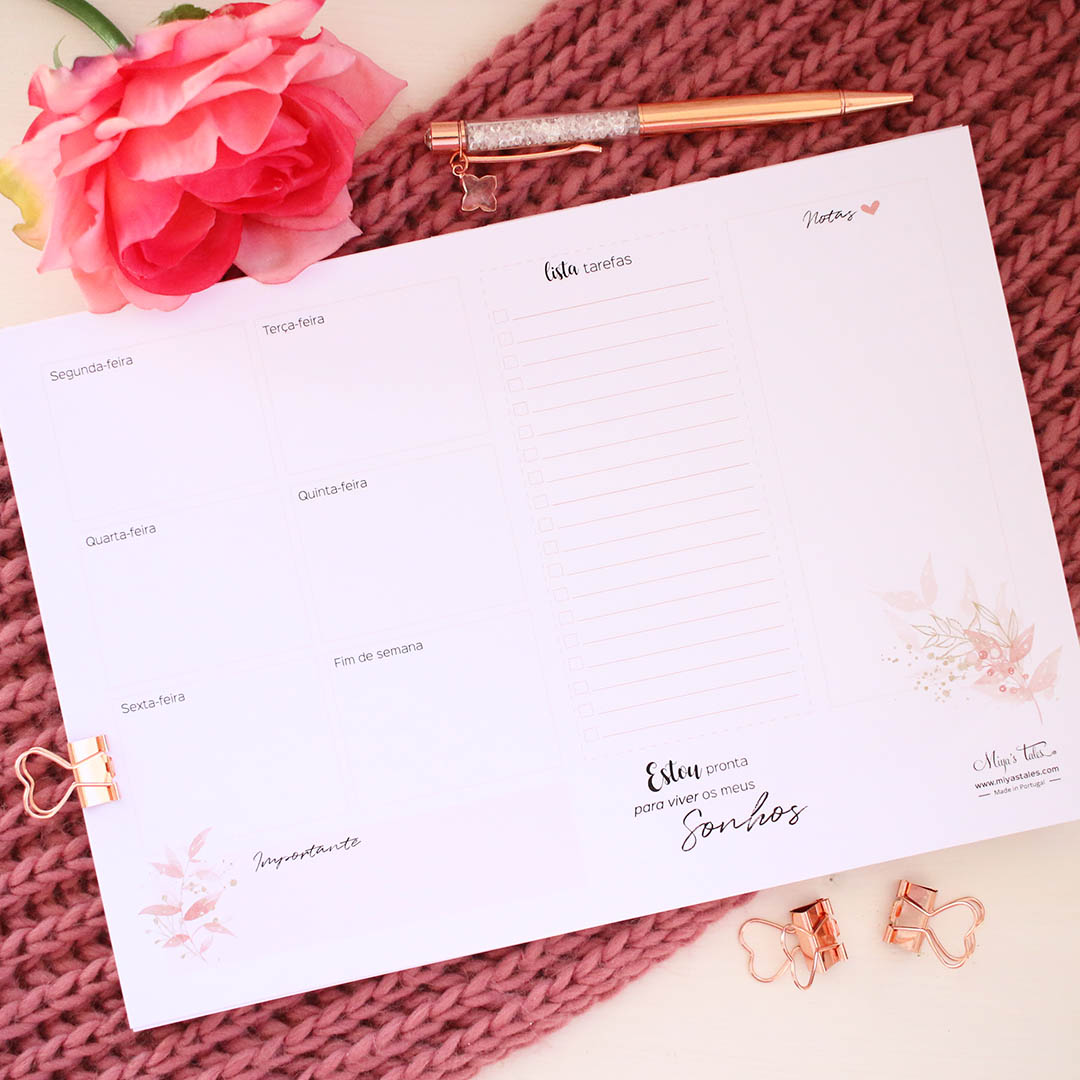 With this weekly planner (Portuguese version), you'll be able to better organize your days so that all your plans, dreams and ideas run smoothly.